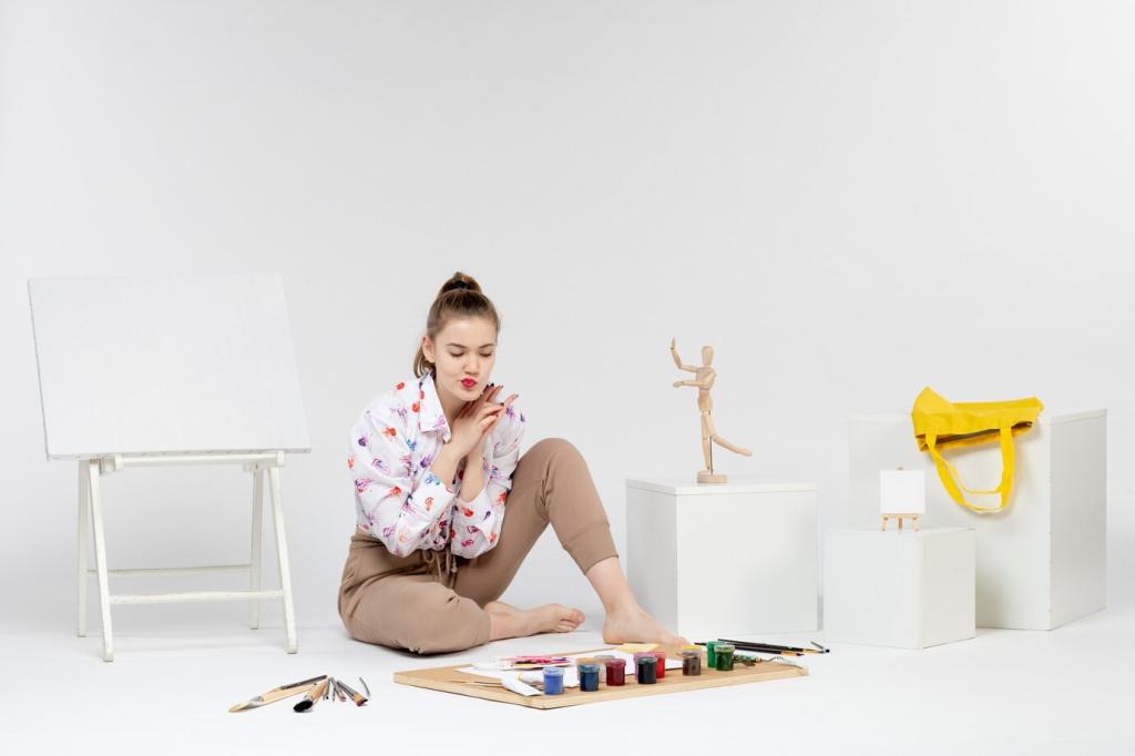 Gebrochene Weißtöne, Sand, Taupe und sanfte Graunuancen schaffen Tiefe ohne Unruhe. Ein einzelner Naturakzent – etwa geöltes Holz – genügt als Fokus. Probieren Sie Musterkarten bei Tages- und Abendlicht und teilen Sie Ihre Lieblingskombinationen mit der Leserschaft.